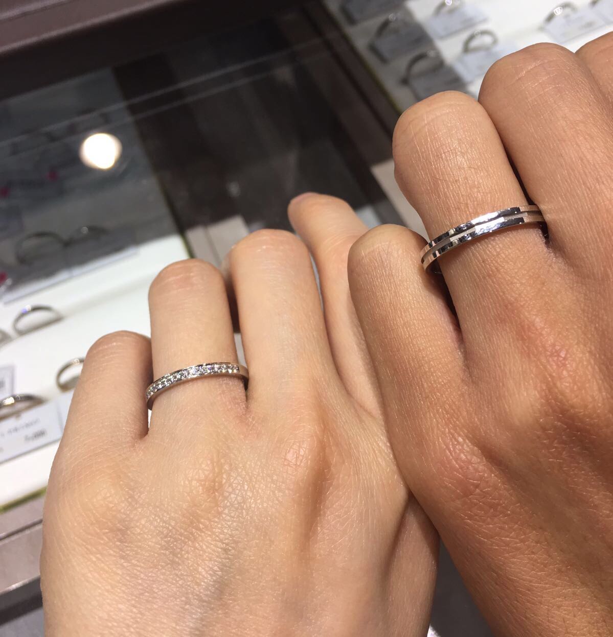 未婚夫其實好鍾意日本牌子嘅婚戒,所以其實佢一早都諗住買呢個牌子。我哋有去婚展,都有睇過吓iPrimo揀過,之後再去旺角雅蘭中心門市度睇。佢婚展有優惠,但係咁啱我朋友有張85折卡,比婚展價更加抵,所以我哋去門市慢慢揀。 佢哋服務態度都好好,好親切。因為我哋試咗好多對,佢哋都冇表現得唔耐煩。我哋都係揀款式,鍾意啲簡單啲幼身啲嘅款。其實佢哋嘅款都好靚,佢有啲已經match咗對戒suggest俾你,佢又可以俾你自己配對,可以自己mix & match。