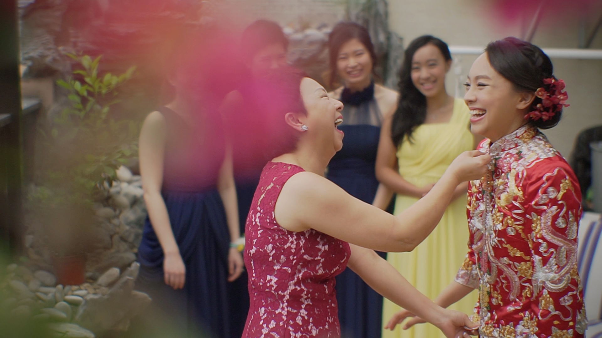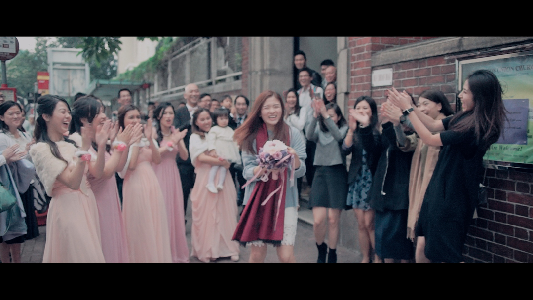 其實我嗰時都幾趕,結婚三個月前先搵佢哋。佢哋對於我哋成個婚禮都俾咗好多意見我哋,包括提我要搵律師,因為我好多嘢都無準備。我嗰時證婚場地係我婆婆間村屋,因為我喺嗰度長大好有感情。由於間村屋係老村嘅舊木屋,所以就唔會有任何設備。原本我哋都無諗過準備,但Chris同Henry佢哋好好,係佢哋主動話有咪收音會好啲,就帶埋喇叭同咪嚟。而且佢哋真係拍得好靚,我哋睇片嗰時都一齊話原來間舊村屋係可以影到咁靚!除此之外,成段朝晚播都拍都好好,我哋之前怕會好cliché但完全無咁嘅問題!個個睇完都話覺得好靚,好感動。其中佢用咗朝早同夜晚我爸爸拖住我行出嚟嘅片段交替咁播,我好鐘意嗰部分。其實呢條片出到嚟真係好超乎我哋想像,因為原本我覺得呢部分可有可無,但宜家出到嚟我好多外國嘅親戚朋友睇完條片都感動到喊!我自己都推介咗好多朋友搵佢哋拍結婚嘅same day edit。