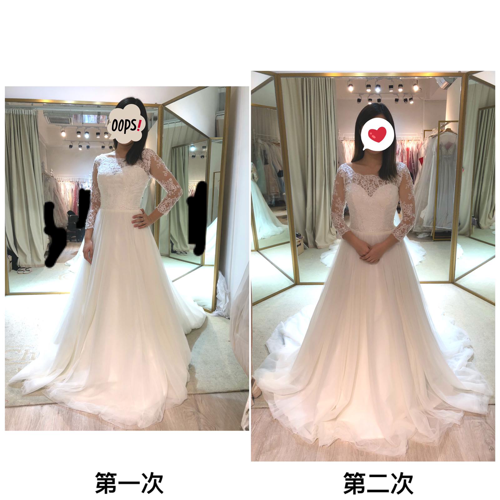 第二次上去serve我嘅係另一位同事,佢就好熱心地幫我搵啲我中意嘅。佢今次係完全聽得明我想要啲咩啦。其實我嘅要求好簡單,我中意啲款就係簡單款。所以佢一聽就即刻明☺️。今次呢個真係好唔同喎,真係大分別。又細心又明白我嘅需要,結果其實試左幾條已經試到我心水嘅,直頭唔使ot🥰。所以唔係個公司問題,係員工個別問題,連啲員工自己都講。因為以我所知其他婚紗公司都係會有一個人跟開就跟對新人,但呢間公司就唔會嘅。今次呢個同事就主動講話佢地四月零應該會番新貨啊,叫我四月零再約上黎啦,即係主動比啲suggestions同埋offer我,真係貼心好多😆。