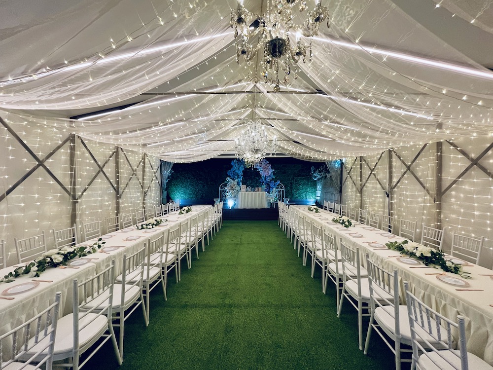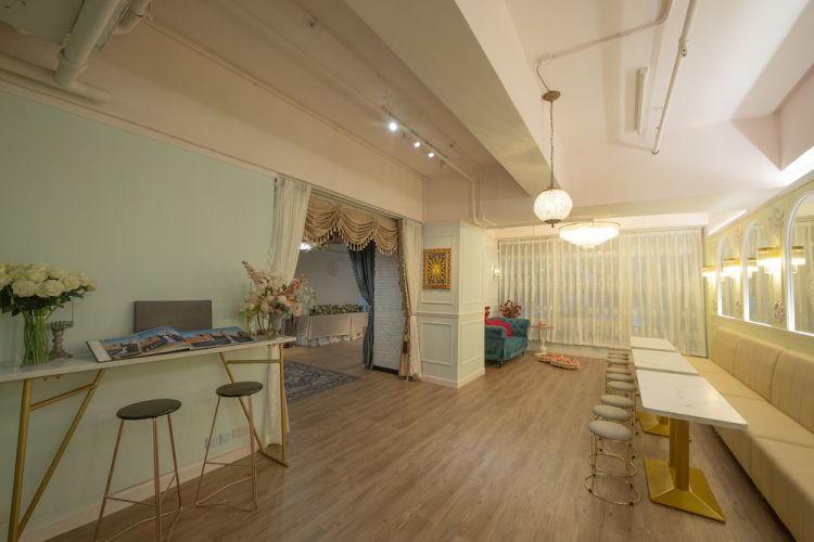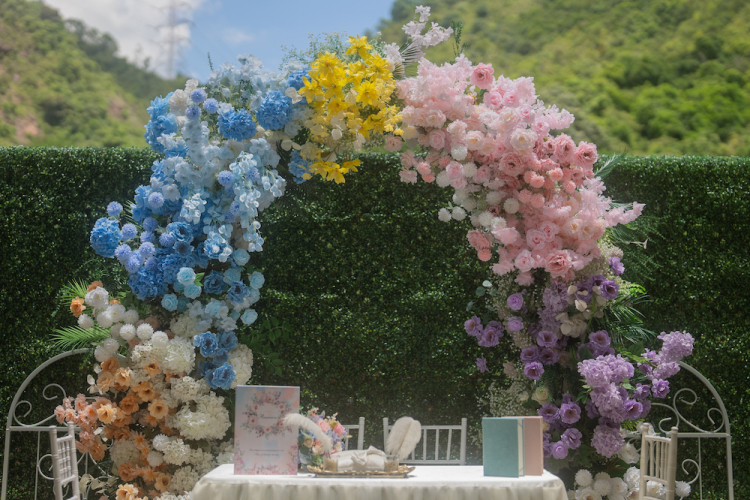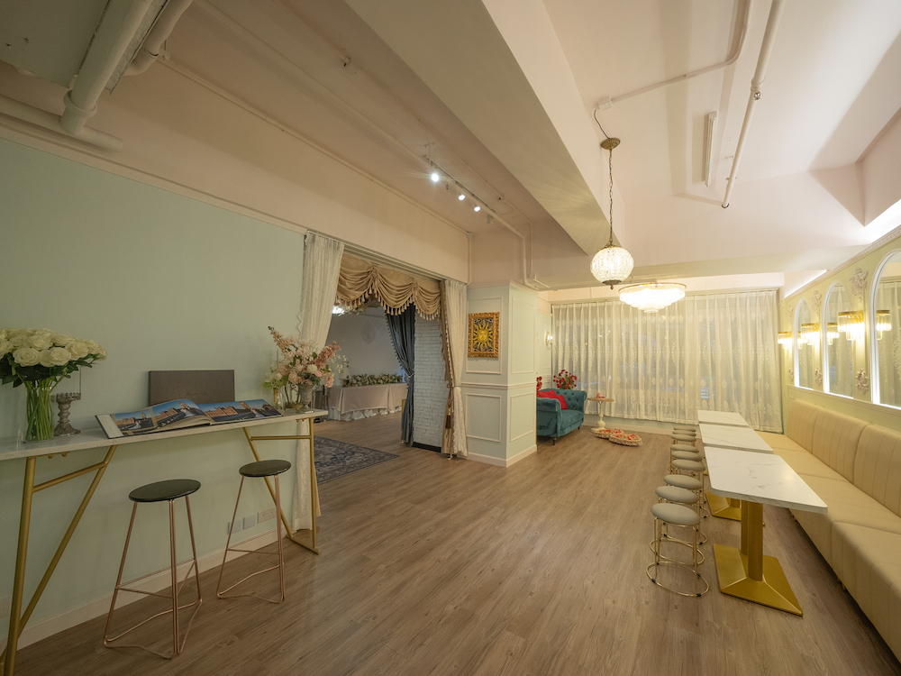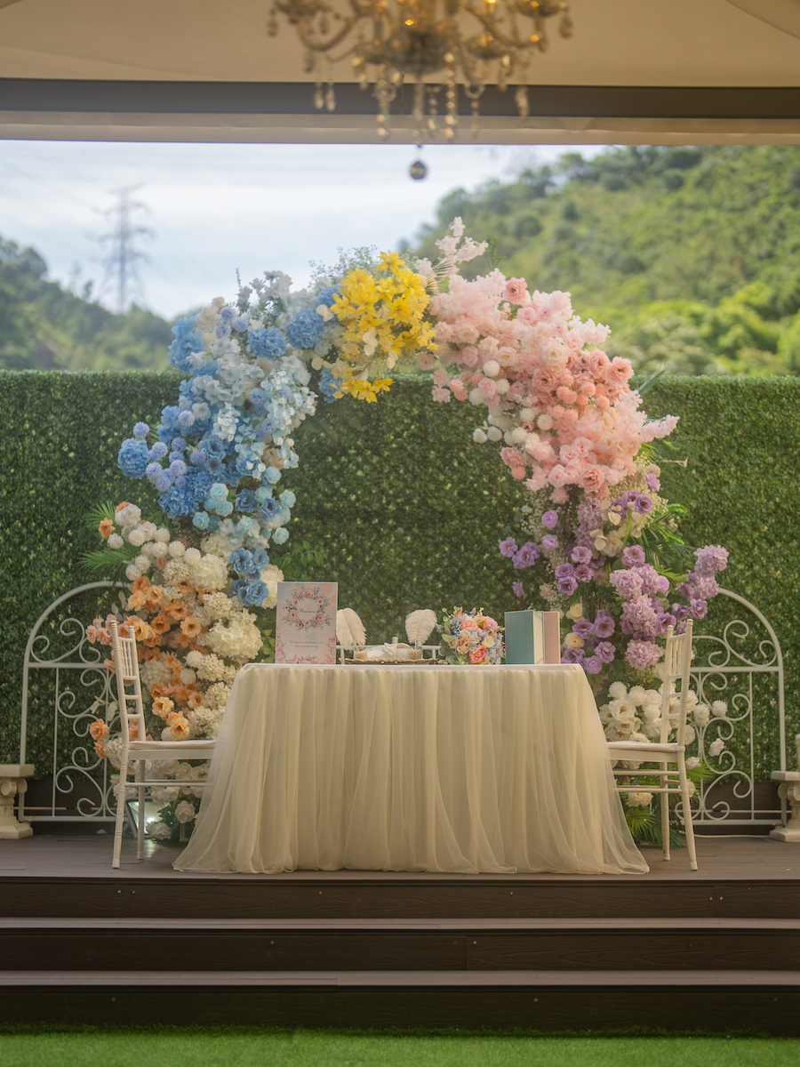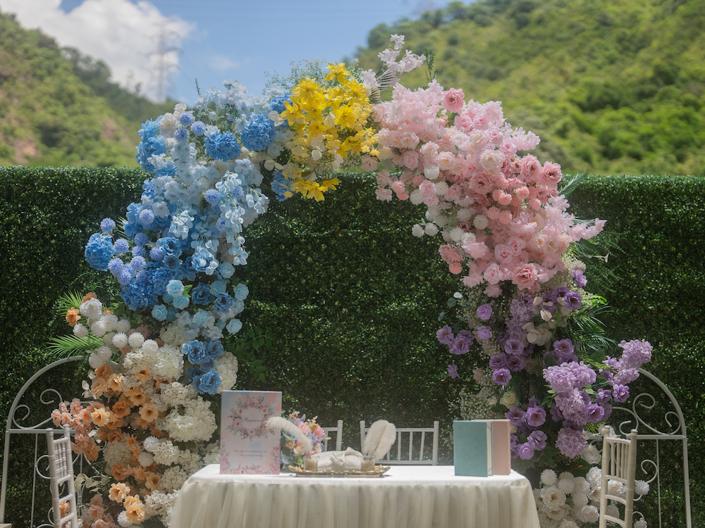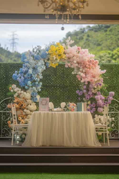 “Reunion Wedding & Party Venue” is an exquisite venue with professional design and floral decorations, with the greenery mountain and blue sky view. Venue can host up to 50-100 guests, located in The Galaxy, Kwai Chung. With our professional wedding guidance, you may flexibly tailor-make your wedding, party or choose our one-stop service