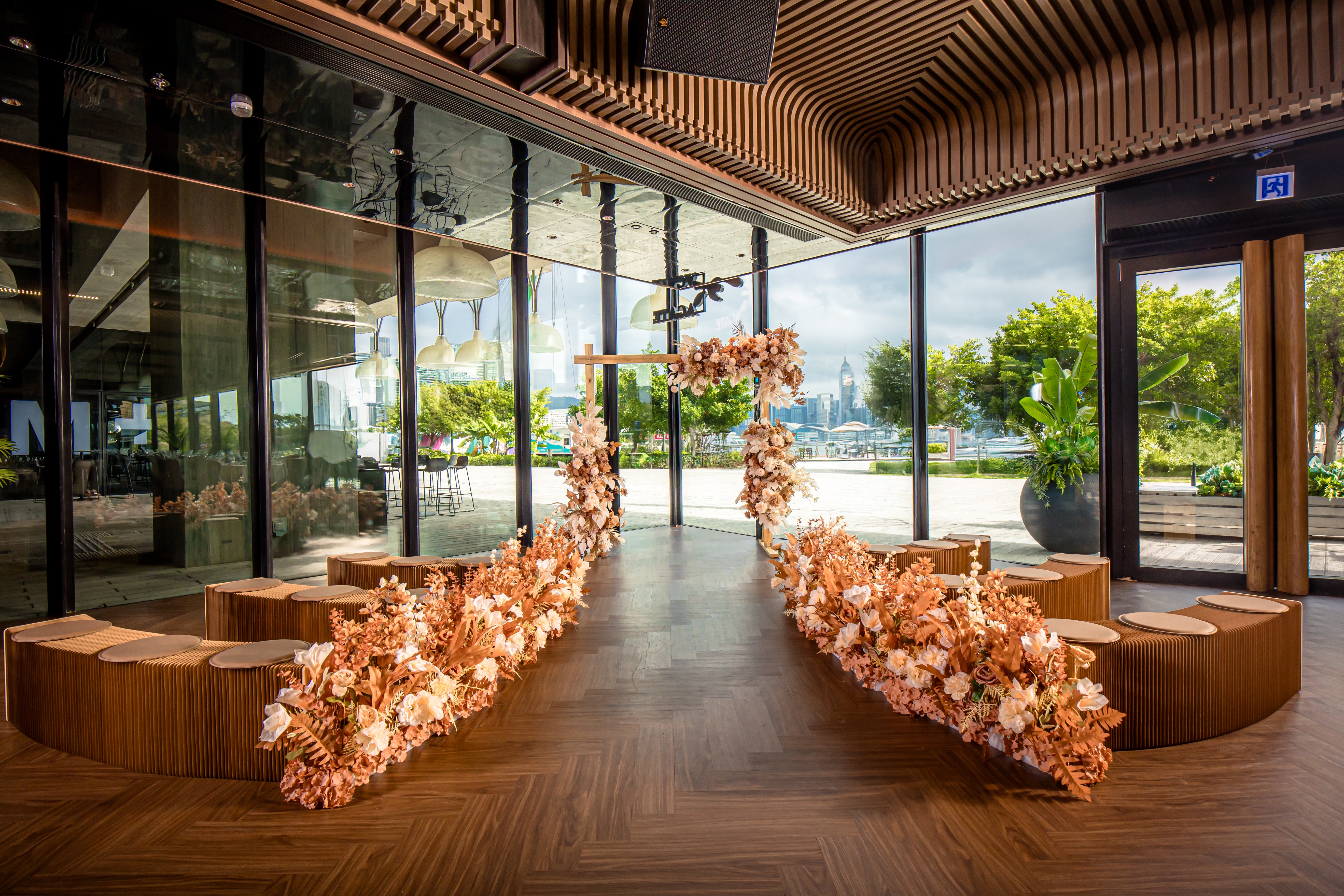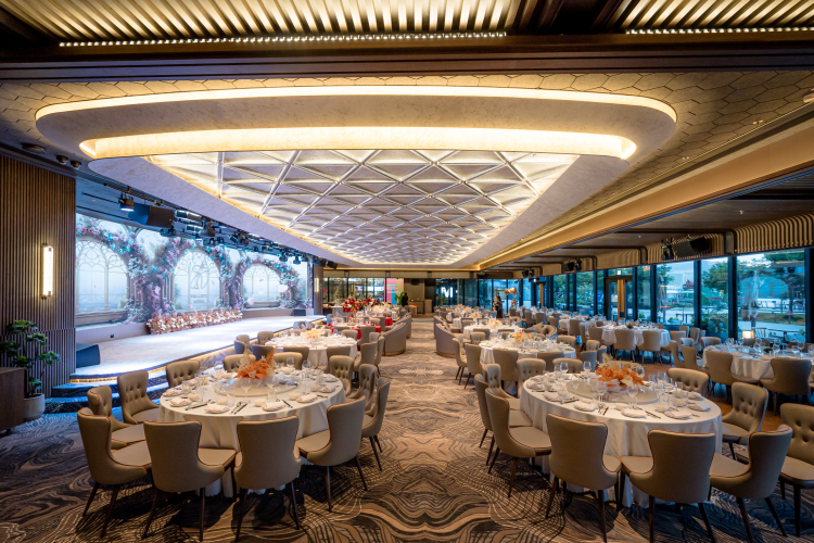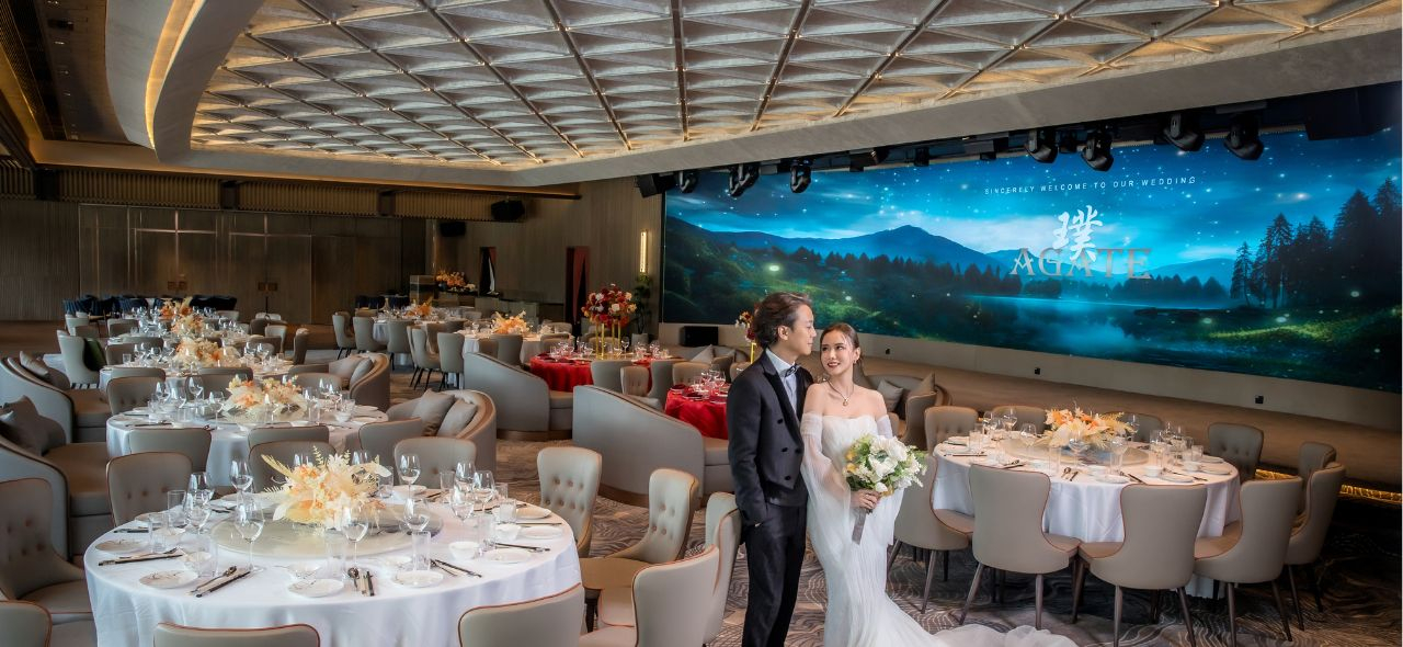 新派雅緻的無柱式宴會廳是舉辦婚宴的絕佳選擇。由戶外輕婚禮、小型包廂輕婚禮至全場延開42席均可靈活配合新人需要。特設天花幻燈效果,提供表演級視聽設備完美實現不同風格的婚禮妙想。寵物友善的戶外證婚場地,更可以攜同毛小孩成為婚禮的一分子。